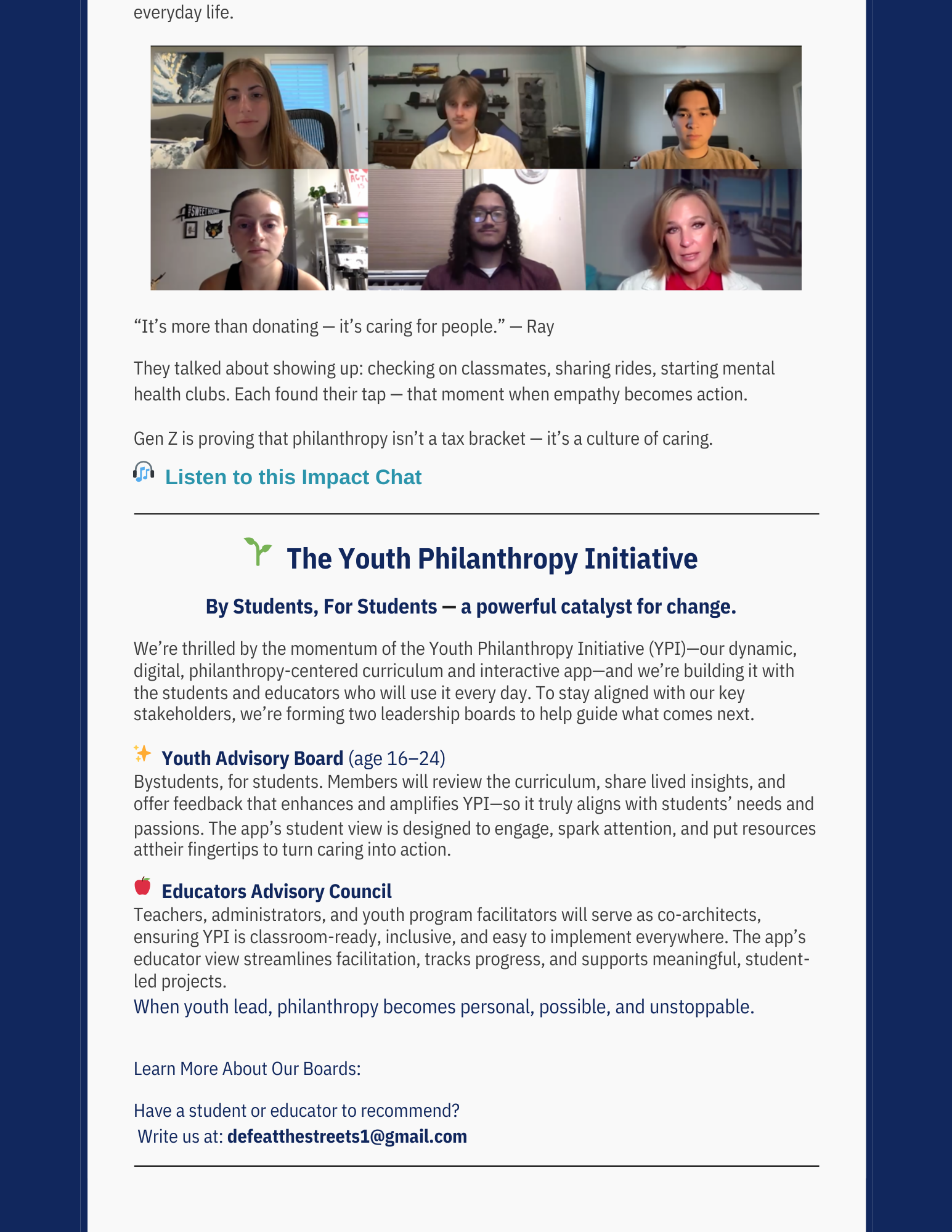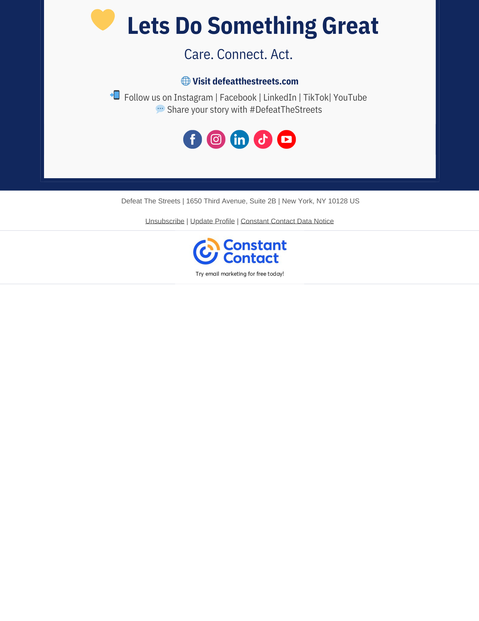 defeat the streets Newsletter
